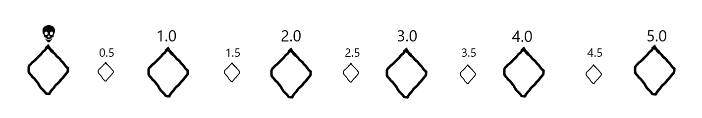 A party whose highest Techniques are 3, 2, 4, and 3 have a total of 12. 12 divided by 4 gives us a starting Rating of 3.0, while a party of 3 and 2 (total 5) has a starting Rating of 2.5. You could even have a solo player with a 2 in their Technique start with a Rating of 2.0!